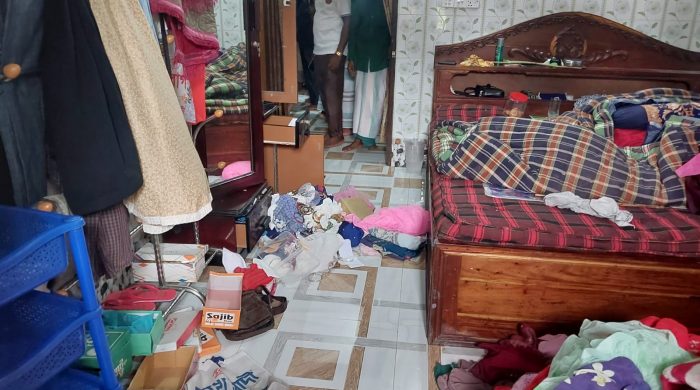 পটুয়াখালীর কলাপাড়ায় গভীর রাতে নিখিল কর্মকার (৫০) নামের এ স্বর্ন ব্যবসায়ীর বাড়িতে দুর্ধর্ষ ডাকাতির ঘটনা ঘটেছে। বৃহস্পতিবার দিবাগত রাত দেড়টার দিকে উপজেলার নীলগঞ্জ ইউনিয়নের আমিরাবাদ গ্রামে এ ঘটনা ঘটে।