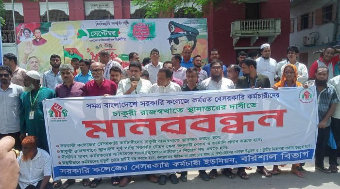 আজ ৩০ আগষ্ট শনিবার সকাল ১১ ঘটিকায় আশ্বিনী কুমার হল চত্বরে উক্ত মানববন্ধন অনুষ্ঠিত হয়। সভাপতিত্ব করেন সরকারি কলেজের বেসরকারী কর্মচারী ইউনিয়নের সভাপতি মো: ইউসুফ মোল্লা, প্রধান বক্তা হিসেবে উপস্থিত বিস্তারিত ...