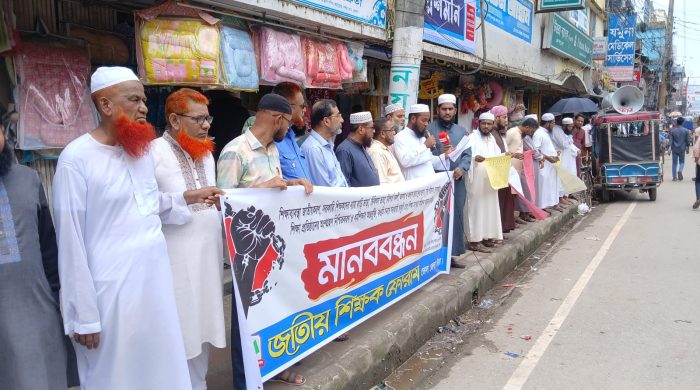 শিক্ষাব্যবস্থা জাতীয়করণ, ধর্মশিক্ষার অন্তর্ভুক্তি, শিক্ষা সংস্কার কমিশন গঠনসহ বিভিন্ন দাবিতে ভোলায় মানববন্ধন কর্মসূচি পালন করা হয়েছে। আজ শনিবার সকালে ভোলা শহরের সদর রোডে কে জাহান মার্কেটের সামনে প্রায় ঘন্টা ব্যাপী