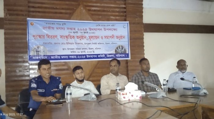 “অভয়াশ্রম গড়ে তুলি, দেশি মাছে দেশ ভরি”এই শ্লোগানকে ধারণ করে হিজলা উপজেলা পরিষদ হলরুমে জাতীয় মৎস্য সপ্তাহ ২০২৫ উপলক্ষে পুরস্কার বিতরণ, সাংস্কৃতিক অনুষ্ঠান, মূল্যায়ন ও সমাপনী অনুষ্ঠানের আয়োজন করা
